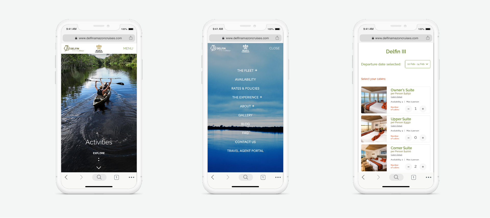 Delfin Amazon Cruises is a world class hotel that belongs to the prestigious Relais & Chateaux collection of hotels worldwide. The project consisted of research, ideation, design, and technological development of their new digital platform, with the aim of establishing a consolidated booking/sales channel.