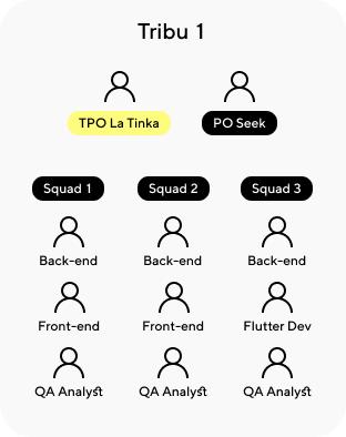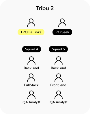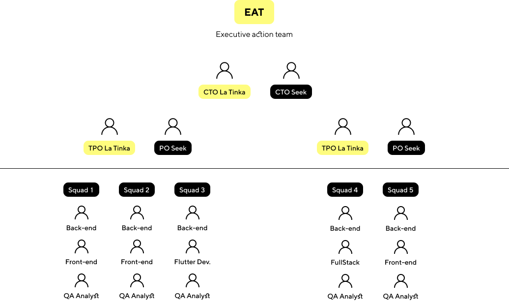 Los squads están compuestos por Full Stack Developers, Front – End Developers, Back End
