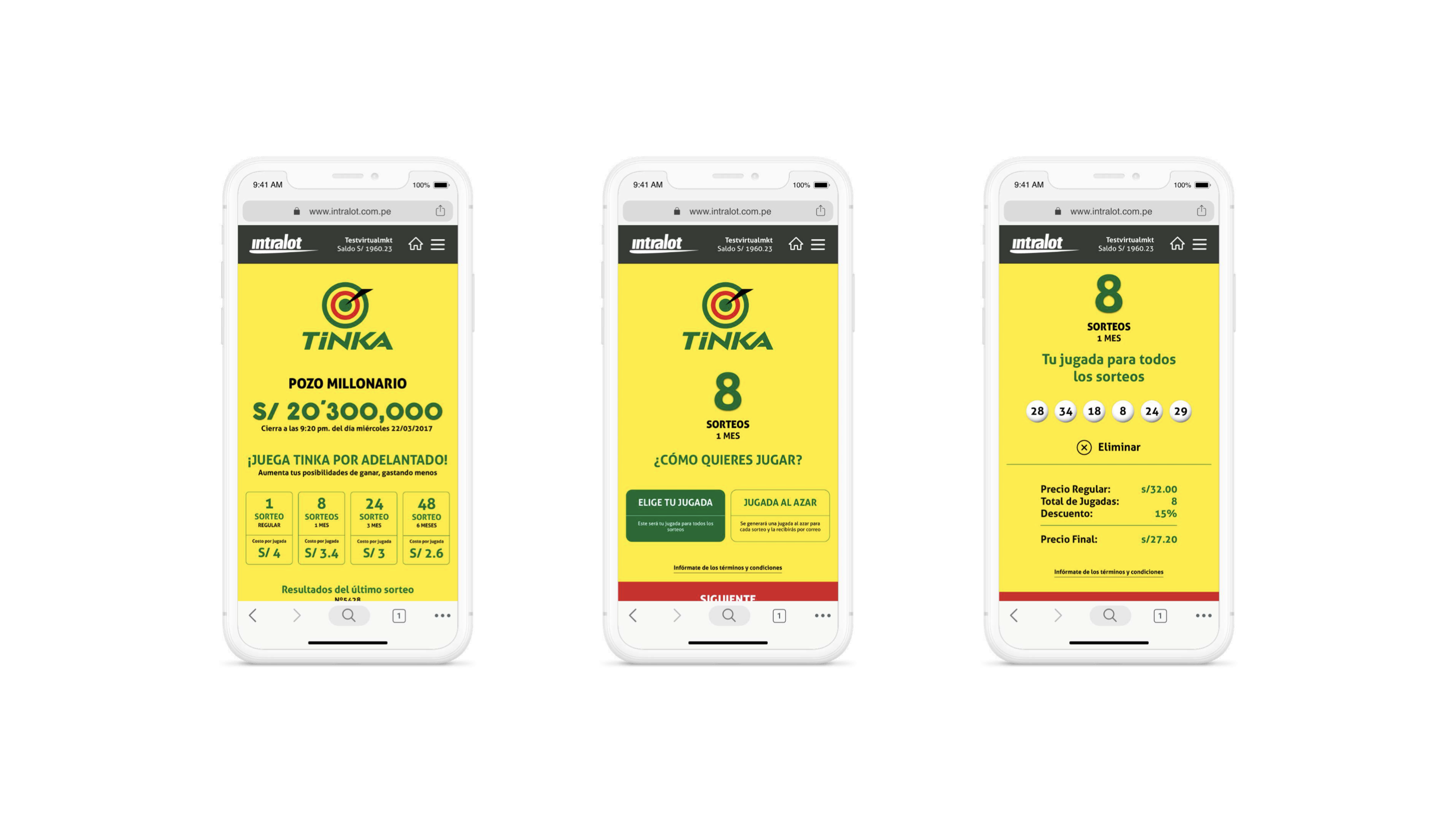 Hace más de 5 años que venimos colaborando en más de 15 proyectos de UI + UX y desarrollo tecnológico para La Tinka y sus marcas, Te Apuesto, GanaGol, Kinelo, entre otras.